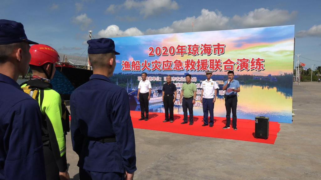 为切实做好海南省琼海市渔港渔船火灾应急救援工作,提高应急救援力量及联动协同作战的能力,2020年6月29日,琼海市农业农村局琼海市消防救援支队博鳌大队、省公安厅海岸警察总队(筹)琼海支队、琼海市综合行动执法局、琼海市潭门镇人民政府在琼海市潭门港联合举办了“2020年琼海市渔船火灾应急救援联合演练”活动。